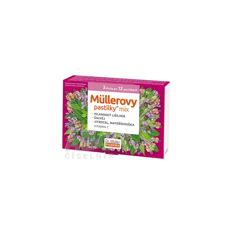 - Müllerove pastilky šalvia a vitamín C.