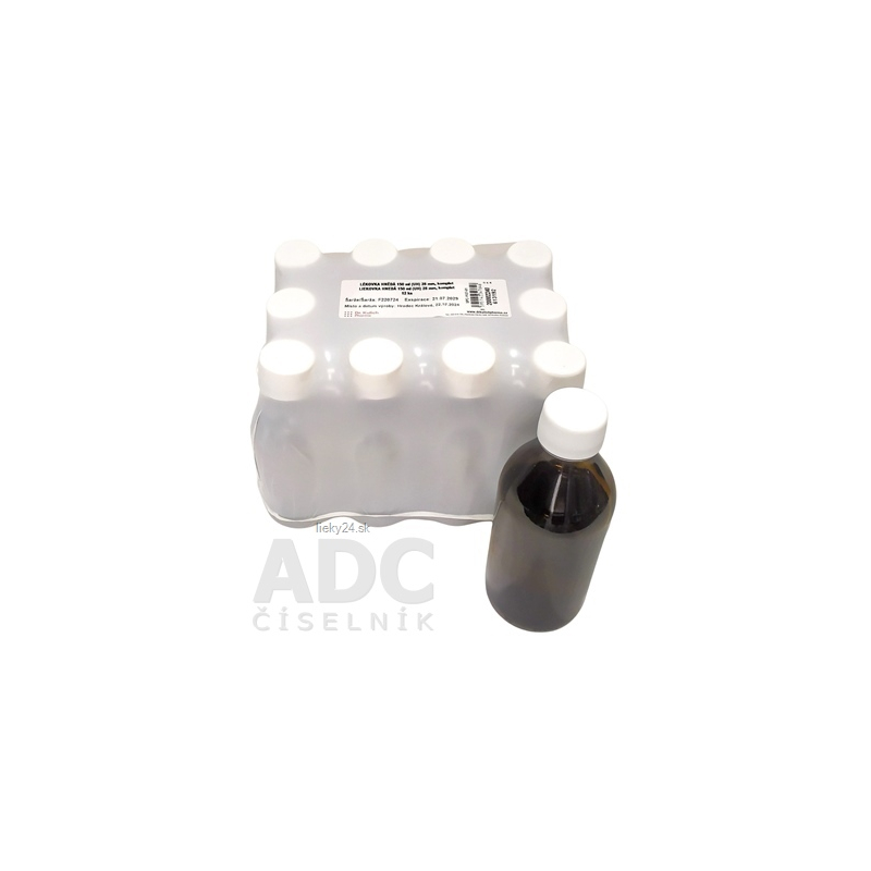 Liekovka z hnedého skla so skrutkovacím uzáverom, obejm 150 ml, šírka hrdla 28 mm. Balenie po 12 ks.