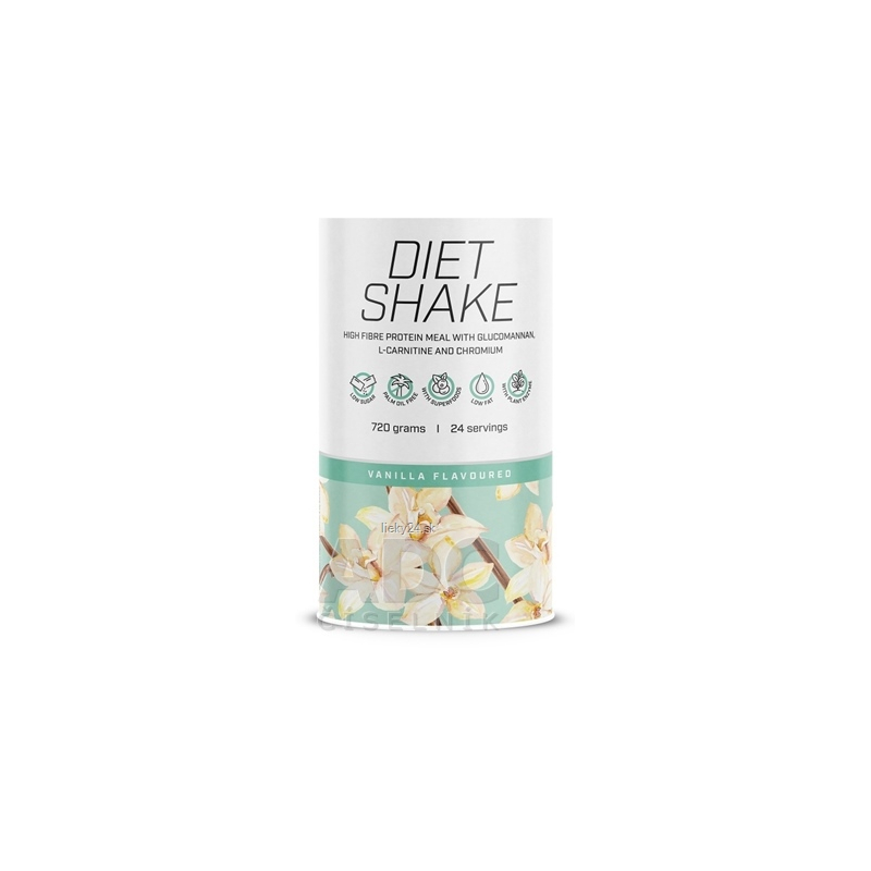 Srvátkový proteínový nápojový prášok s príchuťou vanilky, s vysokým obsahom vlákniny, glukomananu, l-karnitínom a chrómom. Obsahuje sladidlo.