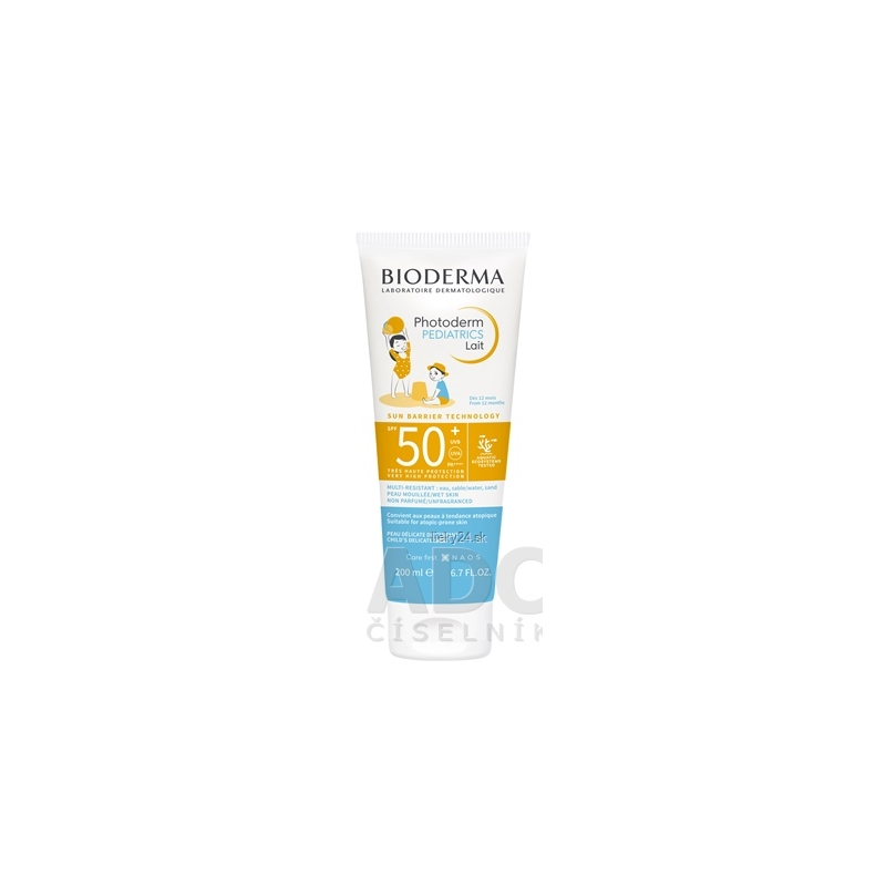 Bioderma Photoderm PEDIATRICS Mlieko pre deti od 12 mesiacov SPF 50+ je mlieko na pokožku tváre i celého tela detí s maximálnou slnečnou ochranou s faktorom SPF 50+. Zaručuje viditeľnú a jednotnú aplikáciu na celú tvár a telo, a teda zaručuje optimálnu ochranu.