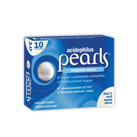 Výživový doplnok PEARLS ACIDOPHILUS s obsahom živých bakteriálnych kultúr.PEARLS ACIDOPHILUS sú vhodné na každodennú podporu trávenia.