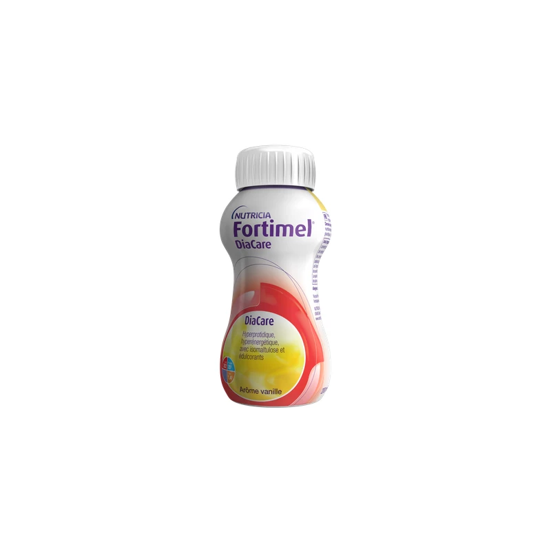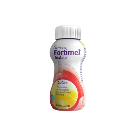 Charakteristika: Potravina na osobitné lekárske účely. Obsahuje cukry a sladidlá. Na diétny režim pri podvýžive súvisiacej s ochorením u pacientov s diabetes mellitus alebo hyperglykémiou. Fortimel DiaCare je vysokoenergetická tekutá výživa s vysokým obsahom bielkovín. Obsahuje vlákninu. Bezgluténový.