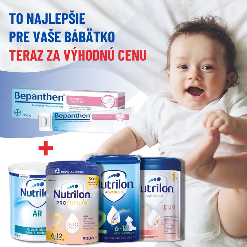 Vybrané mlieka Nutrilon a ochranný krém na citlivú a podráždenú pokožku Bepanthen teraz získate výhodne a s dovozom domov úplne zdarma.