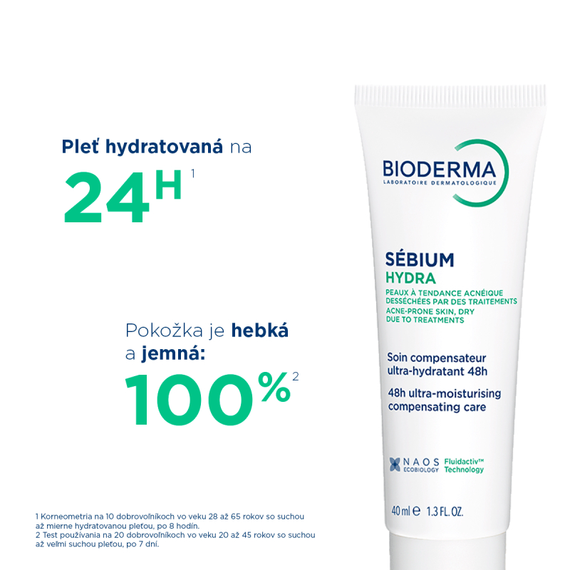 Charakteristika: Všetky typy pokožky, dokonca aj mastná, si vyžadujú hydratáciu vzhľadom na občasné vysušenie a/alebo podráždenie (pod vplyvom špeciálneho ošetrenia, škodlivých vonkajších vplyvov...). Sébium Hydra je vyvinutý špeciálne na kompenzáciu tohto dočasného nerovnovážneho stavu. Hydratačné látky (glycerín) a reštrukturalizačné látky (ceramidy) v Sébium Hydra potláčajú proces olupovania pokožky a zmierňujú pocity pálenia. Silné upokojujúce látky (enoxolón, alantoín) zmierňujú začervenanie a upokojujú pokožku. Patentovaný prírodný komplex D.A.F. (Dermatological Advanced Formulation) zvyšuje toleranciu pokožky. Sébium Hydra obsahuje aj Fluidactiv® – exkluzívny patentovaný komplex biologicky regulujúci kvalitu mazu a zabraňujúci vzniku kožných nedokonalostí.