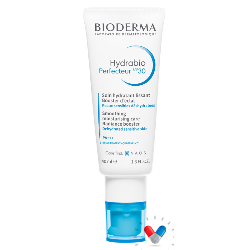Bioderma Hydrabio Perfecteur SPF 30 je kozmetický prípravok na každodenné použitie. Bioderma Hydrabio Perfecteur SPF 30 pomáha hydratovať pleť a je vhodný aj pre suchú, zmiešanú alebo citlivú pokožku. Nekomedogénny. Bez parabénov. Hypoalergénny. Jemný parfum.