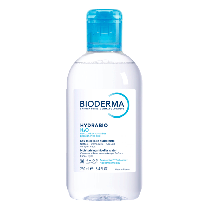 Charakteristika: Hydrabio H2O je prvá dermatologická micelárna voda dokonale kompatibilná s pokožkou. Estery mastných kyselín, ktoré napĺňajú micely sú podobné fosfolipidom bunkových membrán kože (vrchnej vrstvy pokožky) a prirodzene pomáhajú pri obnove hydrolipidického filmu pokožky. Hydrabio H2O zaručuje dokonalé odlíčenie a bezkonkurenčnú toleranciu. Jej exkluzívny biologický patent Aquagenium® aktivuje pokožku a jej prirodzene hydratačné schopnosti tým, že stimuluje produkciu akvaporínov (vodných kanálikov v koži) a napomáha udržiavať vlhkosť, ktorá je nevyhnutná na rovnováhu pokožky.