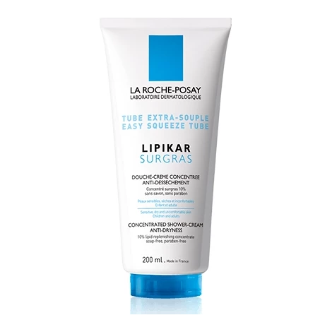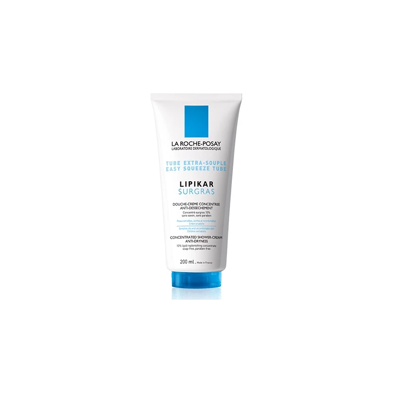 La Roche-Posay LIPIKAR Surgas sprchový gél proti vysušovaniu pokožky, pre suchú pokožku s pocitom diskomfortu. La Roche-Posay LIPIKAR Surgas sprchový gél je obohatený o 10% relipidačný koncentrát a Niacínamid, napomáha obnoviť kožnú bariéru a doplniť lipidy počas sprchovania. S každým ďalším sprchovaním je koža chránená proti pocitu napínania a dlhodobo si zachováva svoju prirodzenú hebkosť