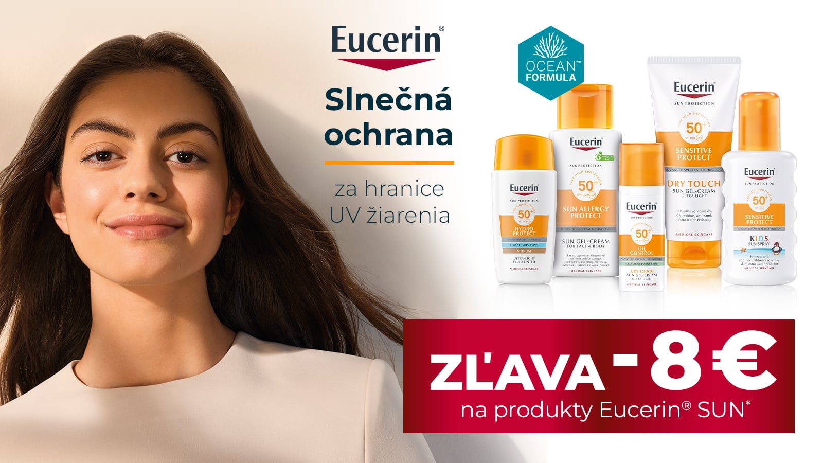 Produkty Eucerin Slnečnej ochrany poskytujú komplexnú ochranu pred poškodením pokožky vplyvom slnečného žiarenia.