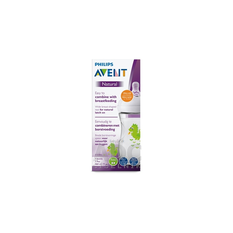 Univerzálna dojčenská fľaša s extra mäkkým cumlíkom s pomalým prietokom. Fľaša je vyrobená z polypropylénu (PP), ktorý je polopriehľadný s farebným obrázkom. Neobsahuje BPA (Bisfenol A).