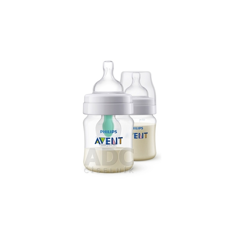 Dojčenská fľaša s ventilom AirFree™ a extra mäkkým novorodeneckým cumlíkom AVENT s jedným otvorom. Fľaša je vyrobená z Polypropylénu (PP), ktorý je mliečnej farby. Neobsahuje BPA (Bisfenol A). Balenie obsahuje 2 fľaše 125ml a jeden ventil AirFree™.