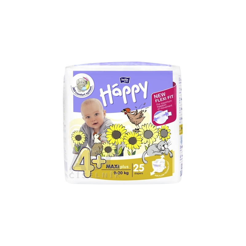 Vďaka systému 3d Flexi plienka Happy perfektne pohlcuje vlhkosť a dokonale sa prispôsobí telíčku vášho dieťatka. Savé jadro vytvorené podľa potrieb dieťatka spoločne s unikátnou vlákninou Magic Green účinne chránia pred presiaknutím. Nové sťahovacie gumičky v páse, elastické zapínanie so suchým zipsom a elastické bočné manžety, to je ešte väčšia voľnosť pohybu a výnimočné pohodlie pre dieťatko. Priedušná vonkajšia vrstva umožňuje detskej pokožke voľne dýchať. Plienky neobsahujú latex ani chlór. Vo všetkých baleniach sa nachádzajú vrecká na použité plienky.