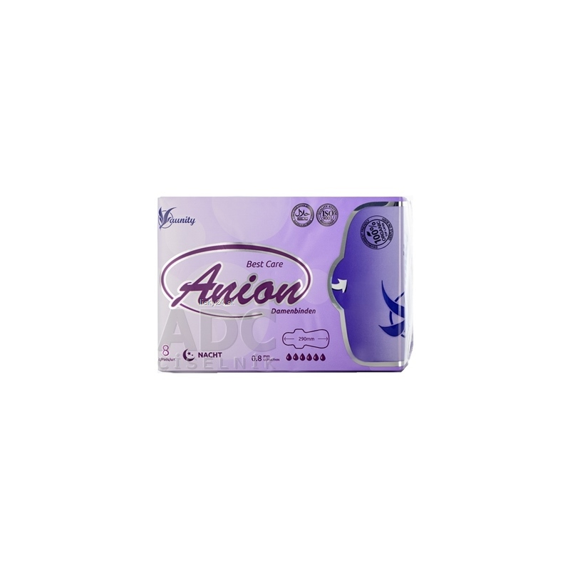 hygienické vložky aniónové nočné, 9500 - 10000 aniónov / cm3, (fialový obal) 1x8 ks
