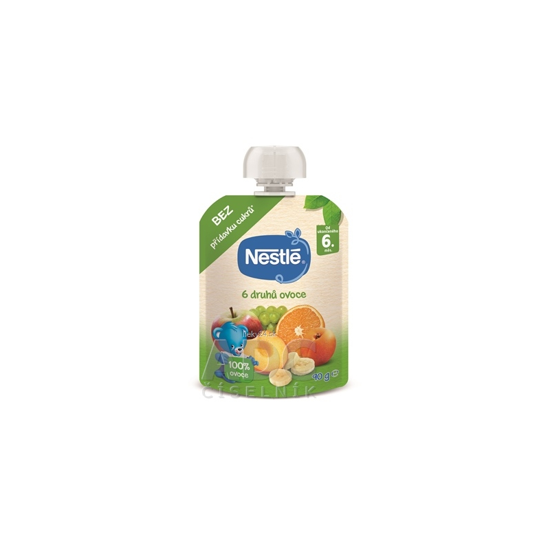 Detský príkrm, ovocná kapsička, 6 druhov ovocia je vhodnou desiatou pre deti od ukončeného 6. mesiaca. Pyré v praktickom, uzatvárateľnom obale, je vhodné na cesty aj na doma.