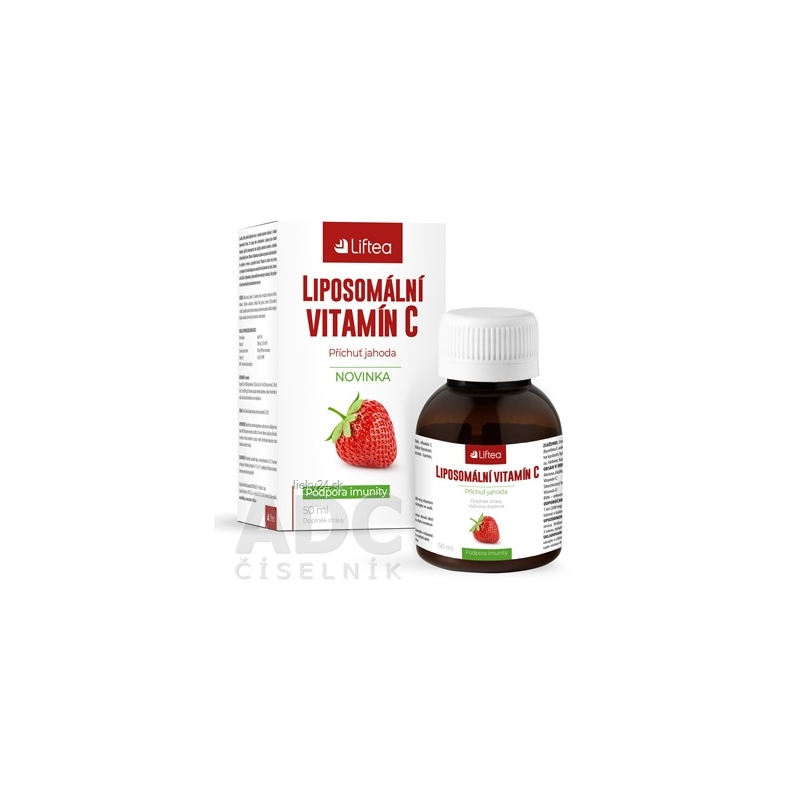 Prípravok s obsahom vitamínu C v tekutej lipozomálnej forme. Balenie obsahuje odmerku.