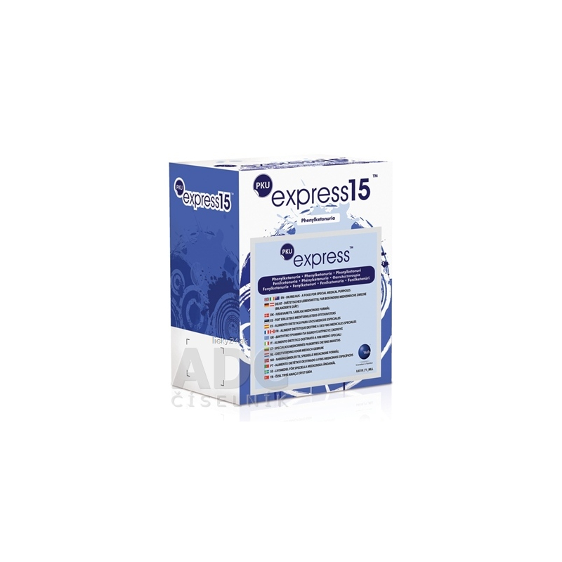 PKU Express 15 je sypký, ochutený prípravok bez fenylalanínu. Obsahuje esenciálne a neesenciálne aminokyseliny, sacharidy,