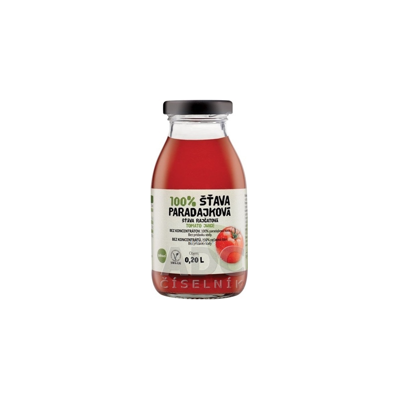 100% zeleninová šťava. Bez pridania vody. Pasterizovaná. Bez konzervačných látok.