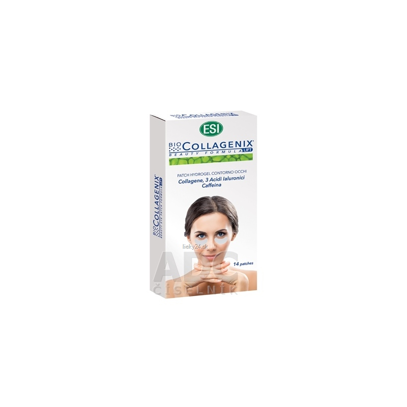 Náplasti pod očné viečka, vo forme hydrogélu s obsahom prírodných aktívnych zložiek ako hydrolyzovaný morský kolagén typ I, kofeín, kys. hyalurónová.