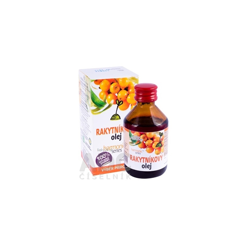 Zloženie: 100% olej z plodov Rakytníku rešetliakového (Hippophae rhamnoides). Komplex polynenasýtených mastných kyselín 65%, mononenasýtených mastných kyselín 24%, nasýtených mastných kyselín 10,5% z toho: kyselina linolová 65%, olejová 24%, palmitová 6,2%, stearová 3,6%; betakarotén 14 mg, vitamín E alfa-tokoferol 5,8 mg, kyselina askorbová (vitamín C) 14 mg v 10 ml oleja.