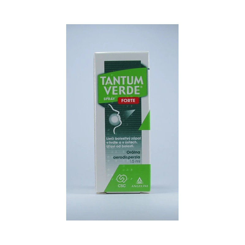 Indikácie: Tantum Verde spray forte je indikovaný na symptomatickú liečbu zápalových prejavov v orofaryngu spojených s bolesťou ako napríklad faryngitída, afty, stomatitída, gingivitída. Ďalšou indikáciou je symptomatická liečba po stomatologických zákrokoch a po chirurgických zákrokoch v orofaryngeálnej oblasti. Vzhľadom na liekovú formu je liek Tantum Verde spray forte (v koncentrácii 0,30 %) vhodný pre dospelých.