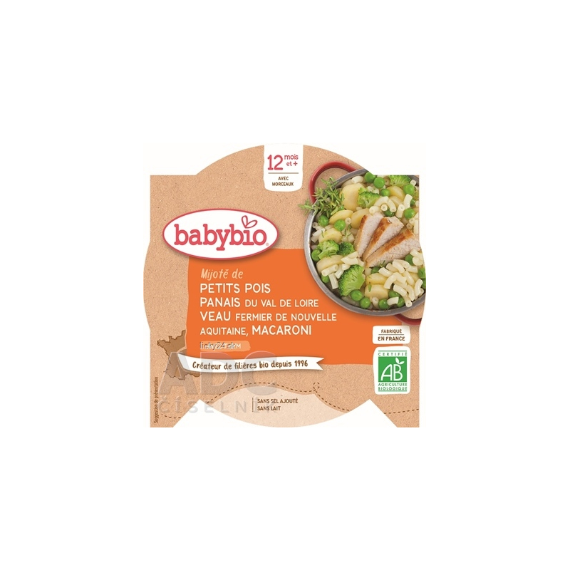 BabyBIO Hrášok paštrnák, teľacie mäso s makarónmi