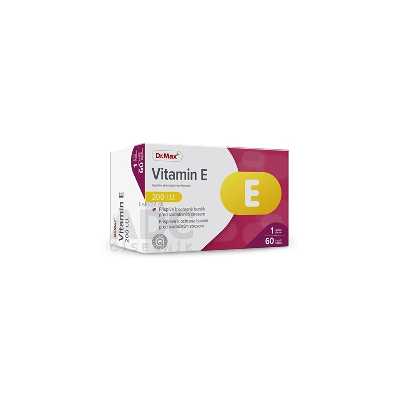 Výživový doplnok - kapsule obsahom vitamínu E. Vitamín E prispieva k ochrane buniek pred oxidačným stresom.