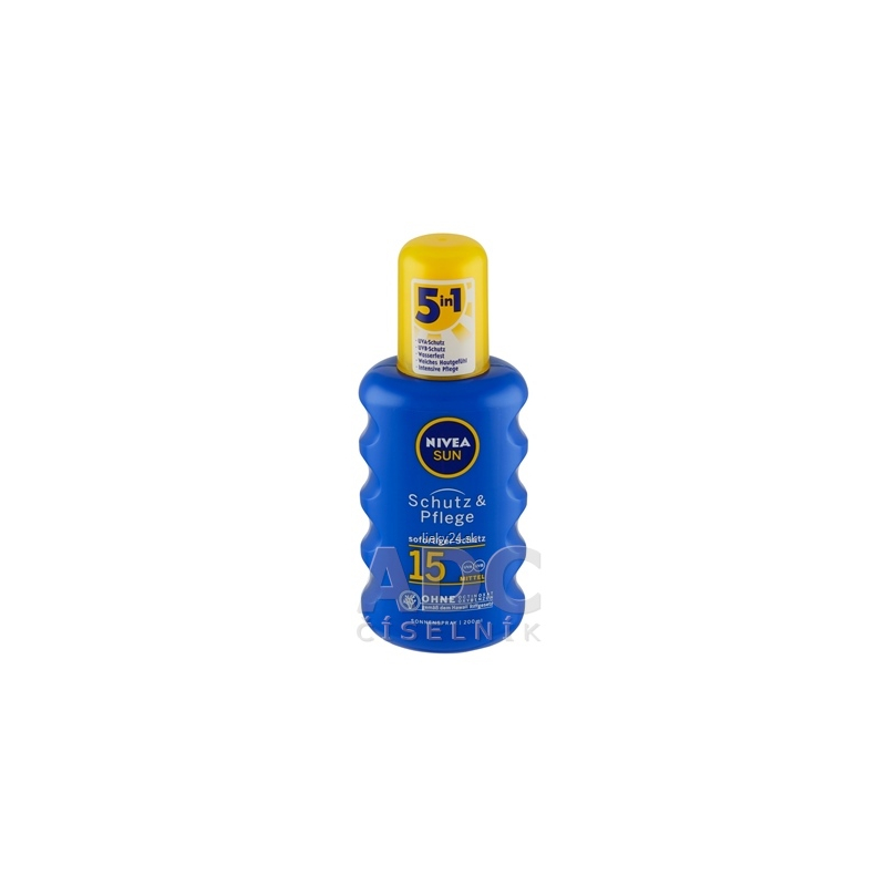 Sprej na opaľovanie, pre rýchlu aplikáciu a ochranu pokožky. OF 15, stredná ochrana.