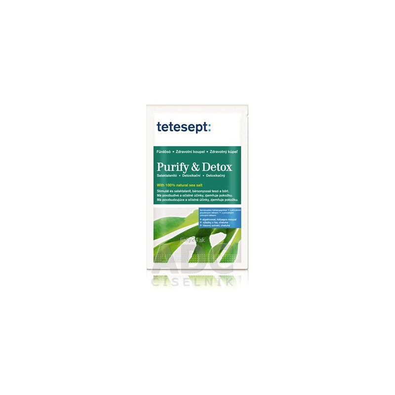 Zdravotný kúpeľ. Tetesept Purify & Detox - morská soľ do kúpeľa s prírodnými účinnými látkami - riasovým extraktom a chaluhou. Neobsahuje konzervačné látky.