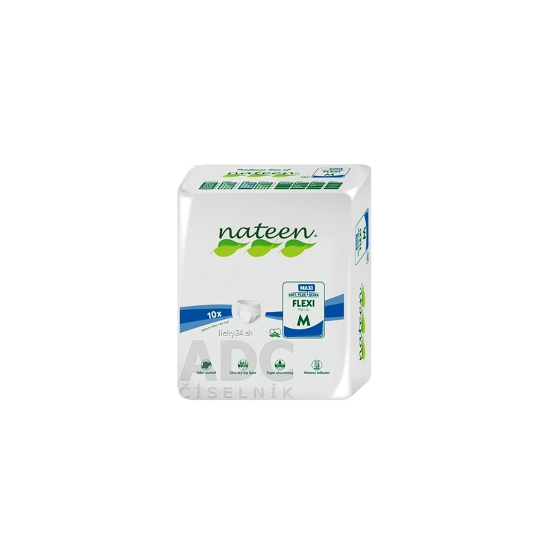 Nohavičky plienkové nateen FLEXI MAXI M sú anatomicky tvarované, vhodné na ťažkú inkontinenciu moču a stolice. Sú určené pre mobilných aj imobilných pacientov. Zabezpečujú pocit sucha, trojité absorbčné jadro zvyšuje schopnosť absorbovať tekutiny a zápach, sú priedušné, vyrobené z netkanej nealergénnej textílie.