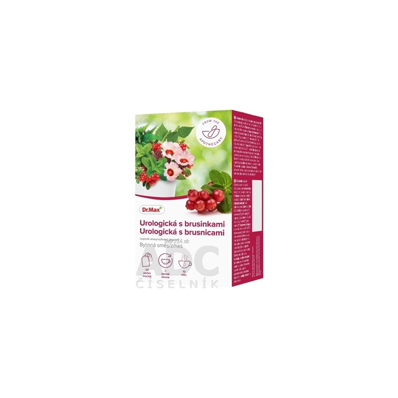 Bylinná zmes s brusnicovými plodmi a vňaťou v nálevových vreckách. Obsah plodov brusníc: 15 % hm.