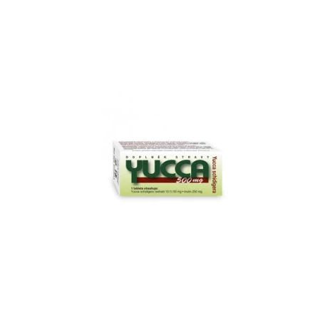 Výživový doplnok NATURVITA YUCCA 500 mg Yucca shidigera obsahuje prírodný extrakt z rastliny Yucca schidigera (10:1) a inulín. NATURVITA YUCCA 500 mg Yucca shidigera sa odporúča užívať v dávke 2 tablety denne, prehltnúť vcelku a zapiť dostatočným množstvom tekutiny.