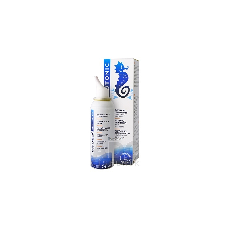 Hypomer isotonic - sprej so sterilizovanou morskou vodou je vďaka vysokému obsahu minerálov a stopových prvkov vhodný na každodennú hygienu dutín nosa. Je indikovaný aj na zmiernenie opuchu a suchosti nosovej sliznic.