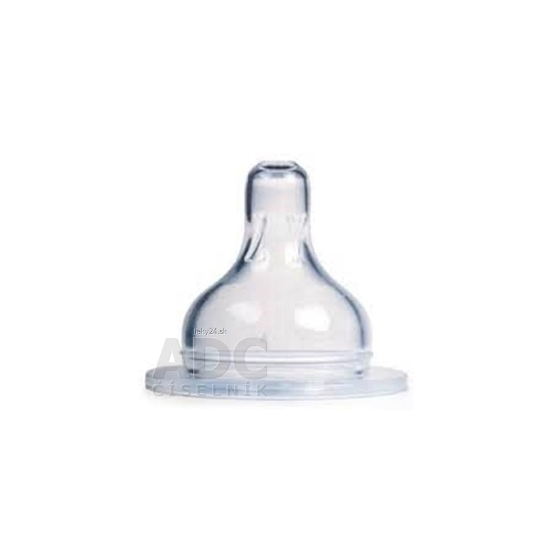 Silikónový okrúhly cumlík na dojčenskú fľašu so širokým hrdlom. Cumlík je vhodný pre deti od 6 mesiacov.