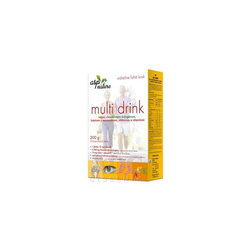 Nápoj s bioaktívnym kolagénom, luteínom so zeaxantínom, vlákninou a vitamínmi A, C, E.