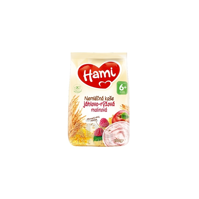 Potravina na báze obilia určená pre dojčatá a malé deti od ukončeného 6. mesiaca, v prášku. Hami nemliečna kaša pšenovo-ryžová malinová bez pridaného cukru (obsahuje prírodné cukry) je vhodná na večeru alebo raňajky. Pre čo najprirodzenejší prechod z tekutej stravy možno kašičku pripraviť z materského mlieka, dojčenského mlieka alebo zo špeciálneho dojčenského mlieka (mlieko s čiastočne alebo úplne hydrolyzovanými bielkovinami).