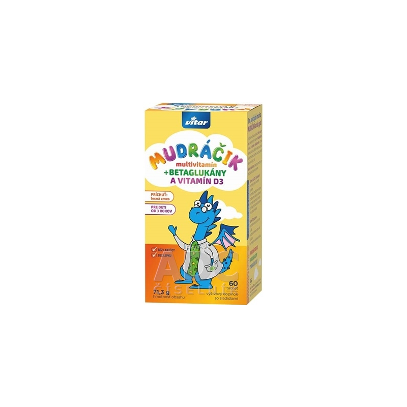 Výživový doplnok - multivitamínové tablety s betaglukánom a extraktom z rakytníka. So sladidlami.