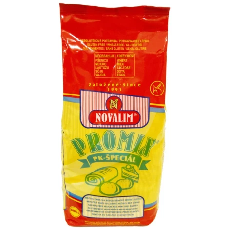 Charakteristika: PROMIX®-PK – bezlepková zmes na prípravu jemného pečiva, halušiek, knedlí a bežné kulinárske použitie v domácnosti – prípravu zásmažky a zahusťovanie pokrmov. Možno tiež použiť na prípravu chleba a pečiva. Určená pre pacientov so špeciálnym diétnym režimom