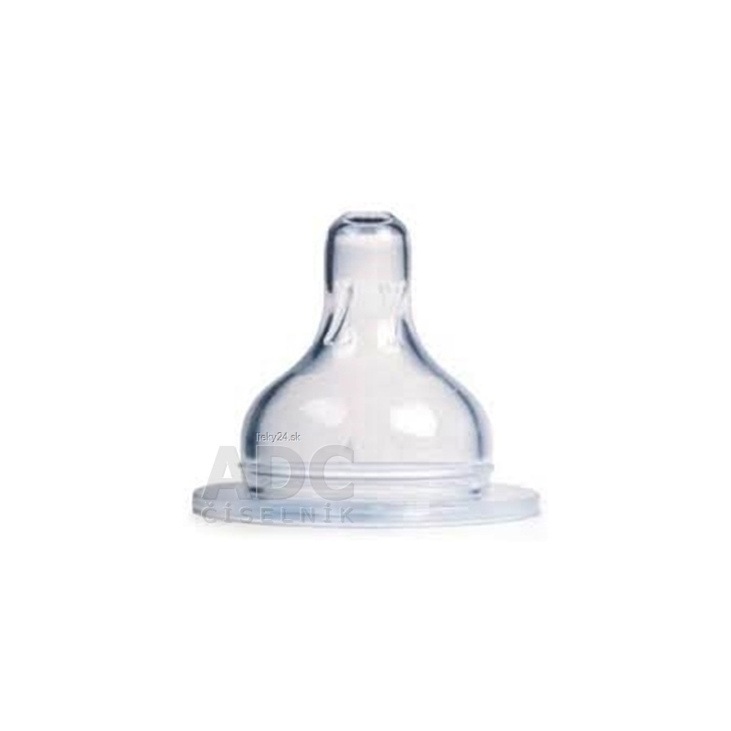 Silikónový okrúhly cumlík na dojčenskú fľašu so širokým hrdlom. Cumlík je vhodný pre deti od 6 mesiacov.