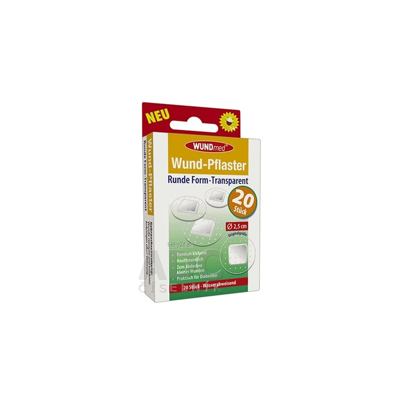 Kruhové transparentné náplasti na rany, na prekrytie menších rán. Náplasti WUNDmed boli klinicky testované a dermatologicky potvrdené, že sú šetrné k pokožke. Držia všade okolo rany a sú vzduchopriepustné a vodotesné. Majú non-stick gázové vankúšiky. Vhodné pre diabetikov.