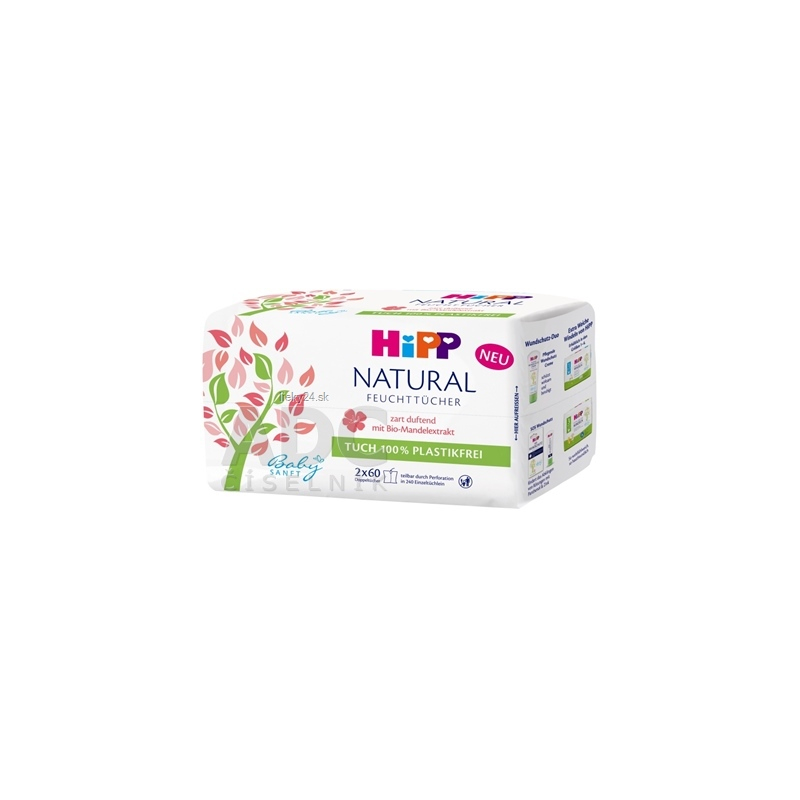 Čistiace vlhčené obrúsky s výťažkom z Bio mandlí. Vhodné od narodenia. 2x60 kusov dvoj-obrúskov (oddeliteľné perforáciou).