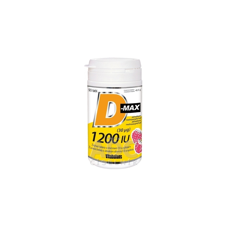Výživový doplnok. Žuvacie tablety s obsahom vitamínu D3 a xylitolu. Jahodovo-malinová príchuť.