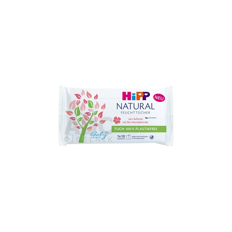 Čistiace vlhčené obrúsky s výťažkom z Bio mandlí. Vhodné od narodenia. 10 kusov dvojobrúskov oddeliteľné perforáciou.