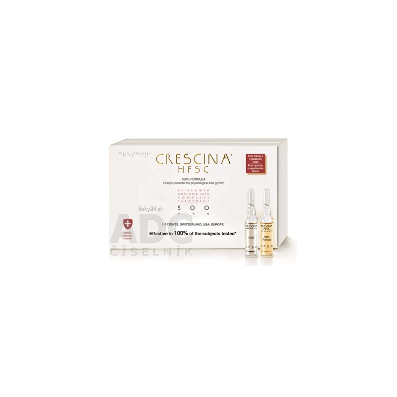 - CRESCINA RE-GROWTH HFSC 100 % (hnedé ampulky) obsahuje patentované jadro Crescina Re-Growth (cysteín, lyzín a glykoproteín), ktoré pomáha fyziologickému rastu vlasov. Časť patentovaných aktívnych zložiek (cysteín, lyzín, glykoproteín a komplex Stem-Engine) sa viaže na špecifických nosičoch, ktoré umožňujú ich postupné, priebežné uvoľňovanie do pokožky vlasov. Správna funkcia kmeňových buniek vo vlasovom folikule je nevyhnutná pre rast nových vlasov.