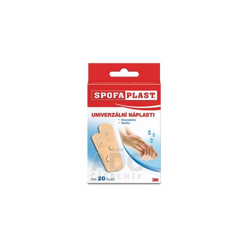 Univerzálne kusové náplasti: mix 20 ks, veľkosti: 19x75 mm a 25x75 mm. Omývateľné, sterilné, hypoalergénne.